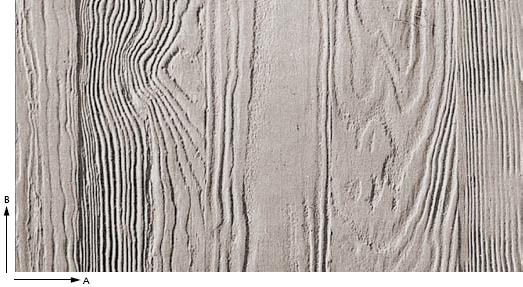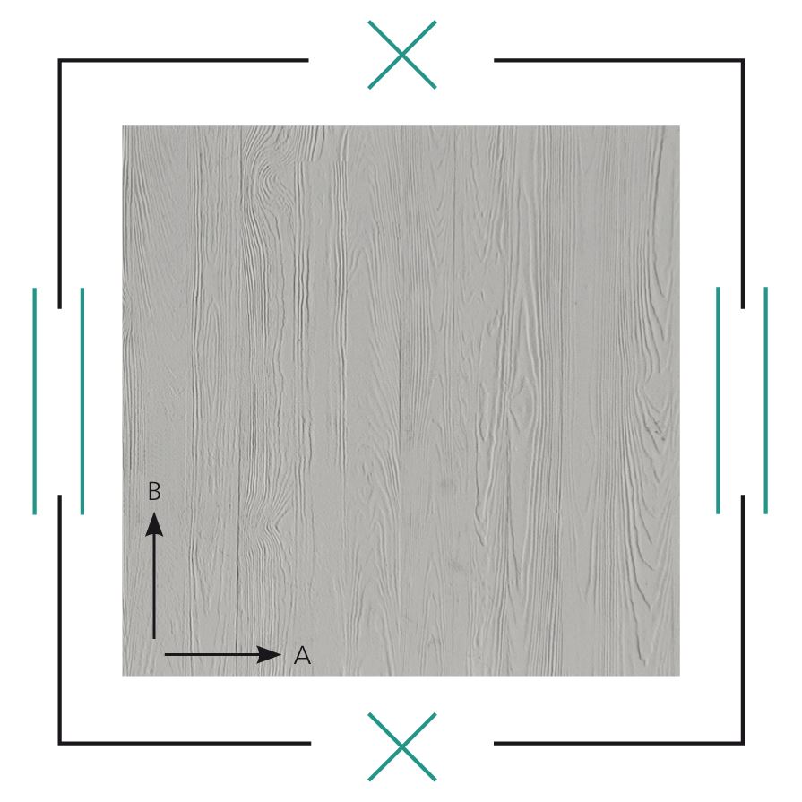 Matryca z fakturą desek ciętych (sztorcowanych). Dla płynnego przejścia między deskami celowo zrezygnowano z fazowania. Przy łącznej długości 10 m deski zestawiono nieregularnie "na zamek", dzięki czemu łączenia są prawie niewidoczne i powstaje wielkopowierzchniowa faktura drewna.