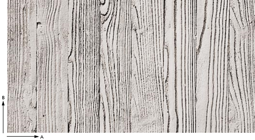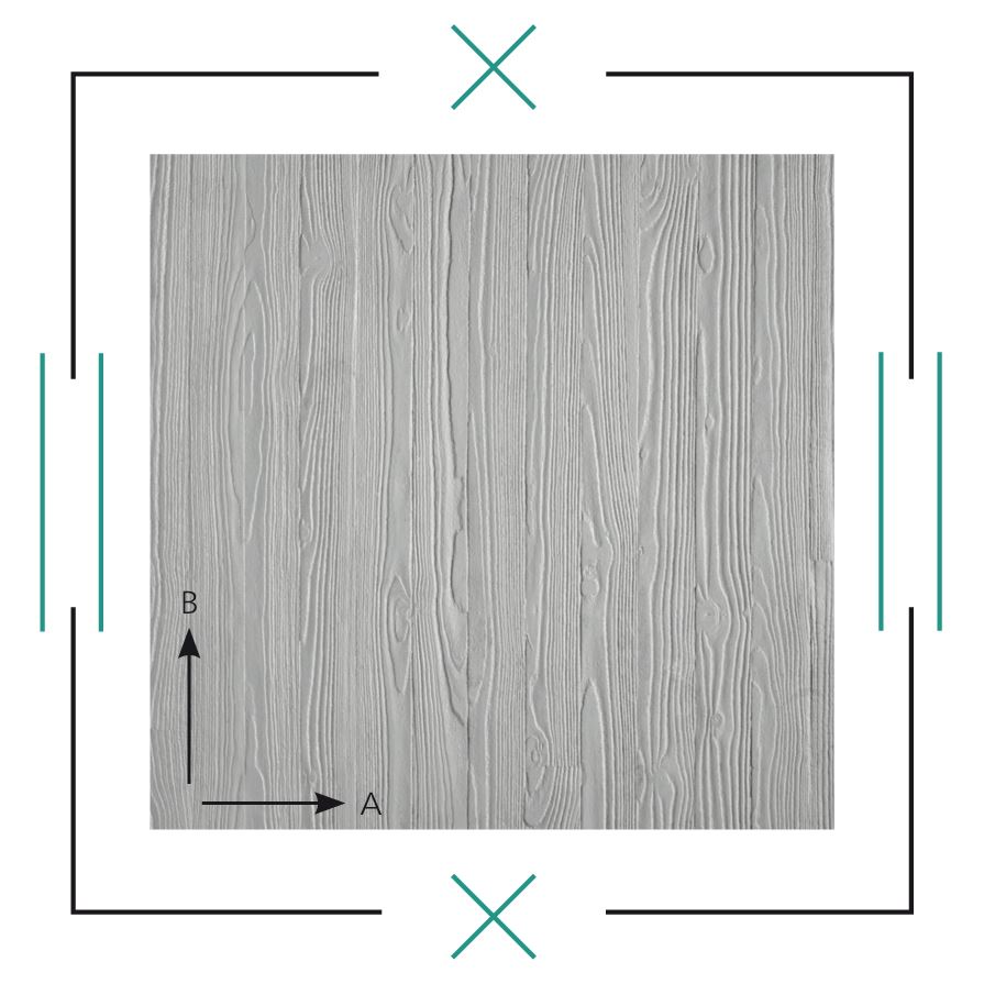 Wyraziste usłojenie z wtrąceniami sęków nadaje strukturze rustykalny charakter. Deski o szerokości ok. 75 mm bez fazy; trzy warianty matrycy pozwalają elastycznie zmieniać kierunek desek. Struktura bez widocznych styków desek.
