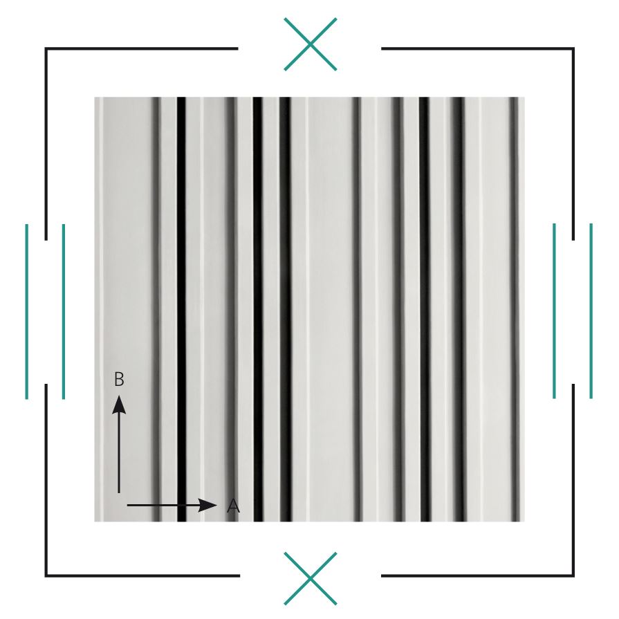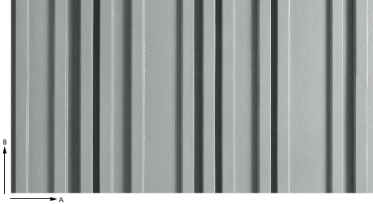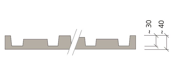 Struktura lamelowa z trapezami o zróżnicowanej szerokości i wysokości. Daje elegancką, wyraźną pracę światła i cienia.