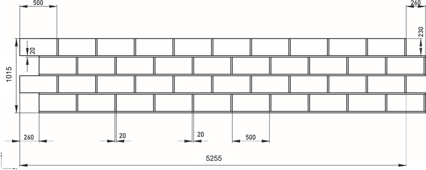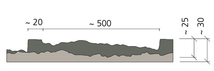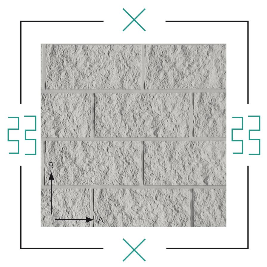 Klasyczny mur z kamienia naturalnego w wiązaniu wozówkowym. Często stosowany w budownictwie inżynieryjnym; długość A 5255 mm. Matryca ma nieregularne zazębienie i może być dowolnie przedłużana w kierunku A lub B.