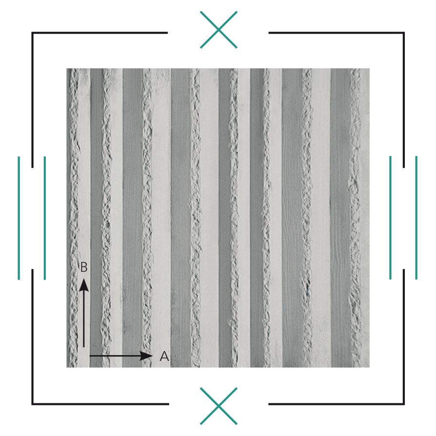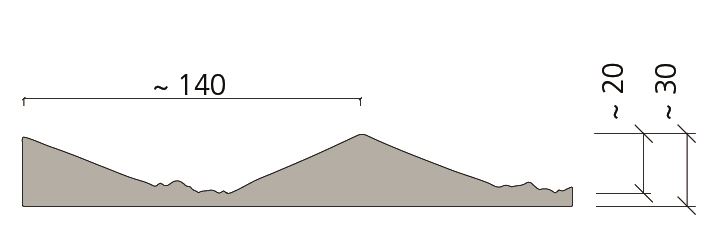 Wzór oparto na odlewie z nieregularnych, trójkątnych listew drewnianych ułożonych obok siebie. Następnie wierzchołki betonowych "trójkątów" zostały równomiernie ścięte, co daje ciekawy, uporządkowany rytm.
