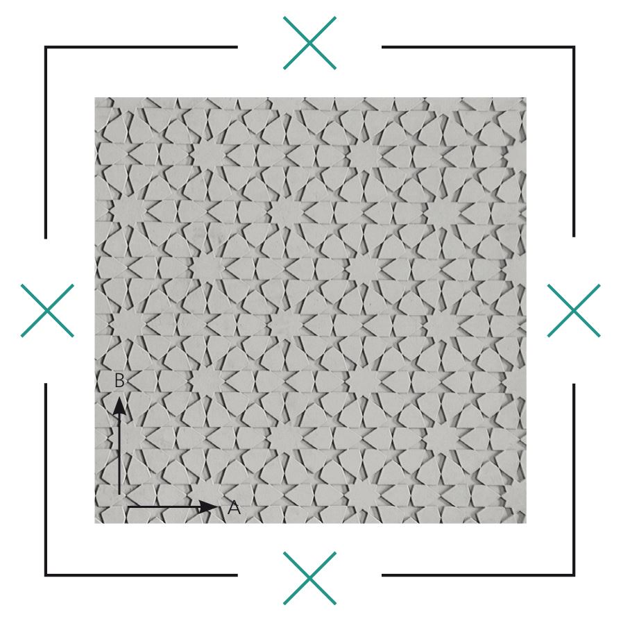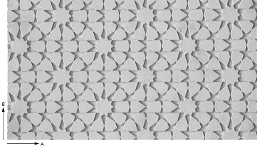 Motyw oparty o płytki Girih (zestaw pięciu wzorów stosowanych w architekturze islamu). Matryca w zgrabny sposób przenosi ten ornament na beton.