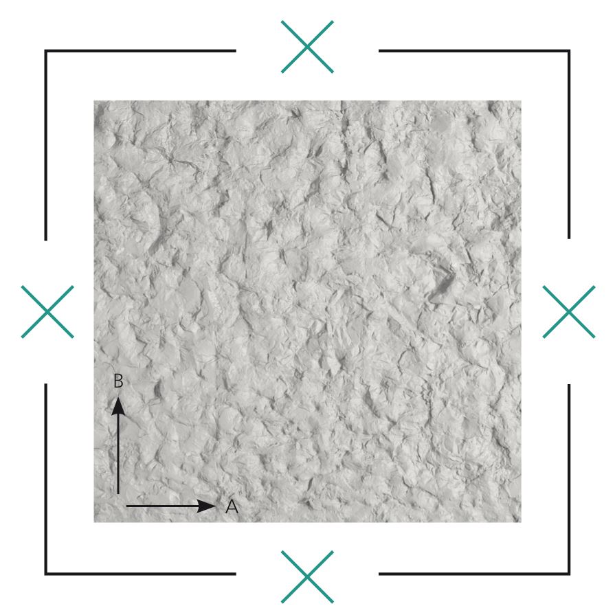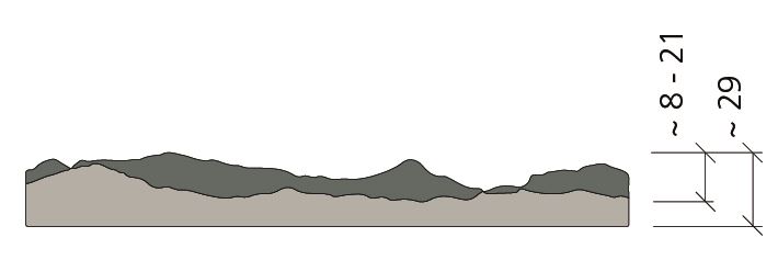 Efekt dużej płyty granitowej o grubo ciosanej powierzchni. W przeciwieństwie do Granit 2 nie trzeba zwracać uwagi na kierunek ułożenia faktury.