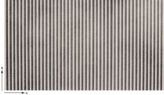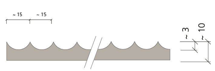 Delikatna struktura żebrowa z gęsto ułożonymi, kolistymi żebrami.
