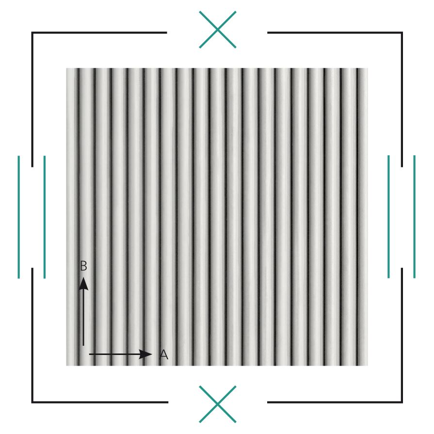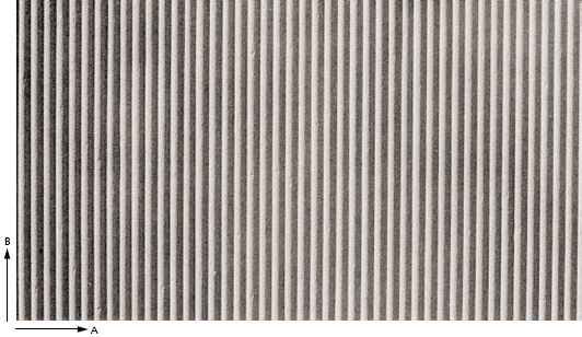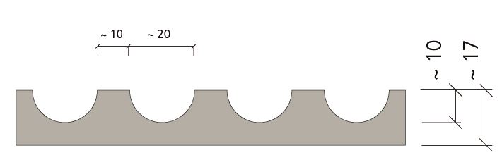 Żłobkowana struktura z przesuniętymi półokręgami wypukłymi (relief dodatni). Jest negatywem wzoru Gladbeck.