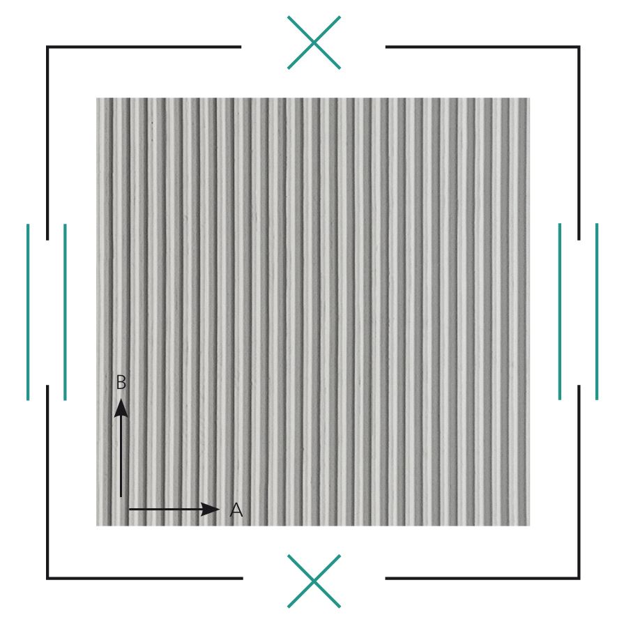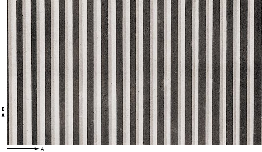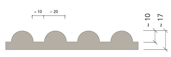 Żłobkowana struktura z przesuniętymi półokręgami wklęsłymi (relief ujemny). Jest negatywem wzoru Krefeld.