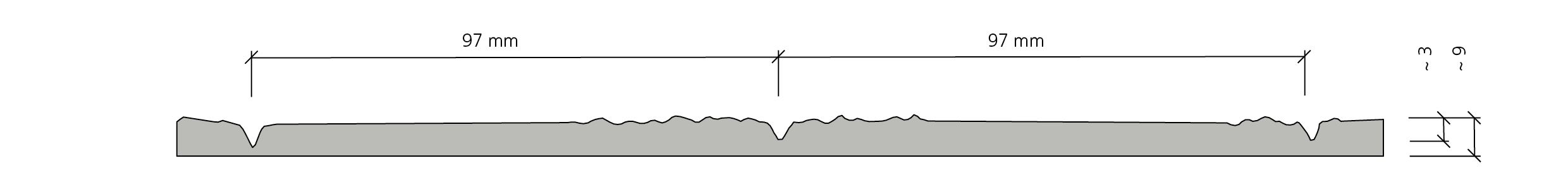 Wykonana z wysokiej jakości szczotkowanych desek o szerokości 96 mm. Zamiast klasycznej fugi, w betonie pojawia się ok. 3-mm wyniesiony styk między deskami, co daje bardzo wyrazisty efekt. Przy długości struktury 3 m zrezygnowano ze styków desek.