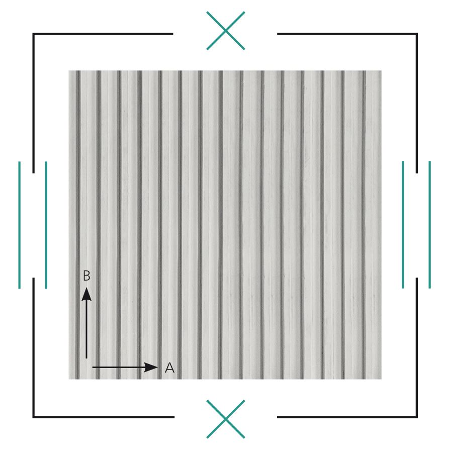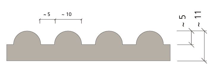 Żłobkowana struktura z przesuniętymi półokręgami wklęsłymi. Bardzo podobna do Gladbeck, ale "odchudzona" o ok. 50% (delikatniejszy rysunek).