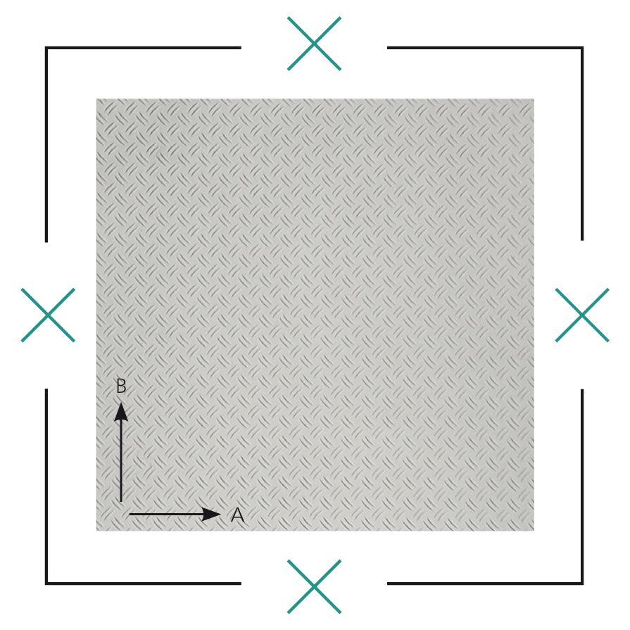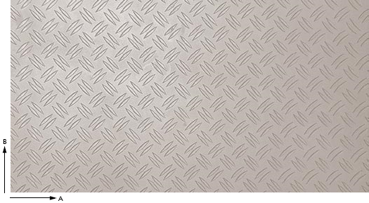 Faktura blachy ryflowanej z 2 "łzami". Klasa antypoślizgowości R13 (wg DIN 51130). Wzór nie jest powiększalny; wymiar maty A = stały.