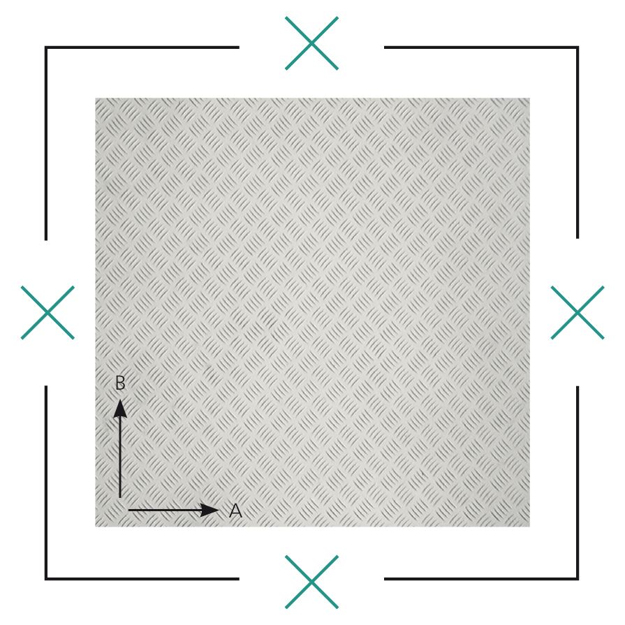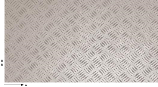 Faktura blachy ryflowanej z 5 "łzami". Klasa antypoślizgowości R12 (wg DIN 51130). Wzór nie jest powiększalny; wymiar maty A = stały.