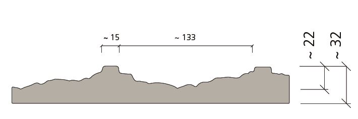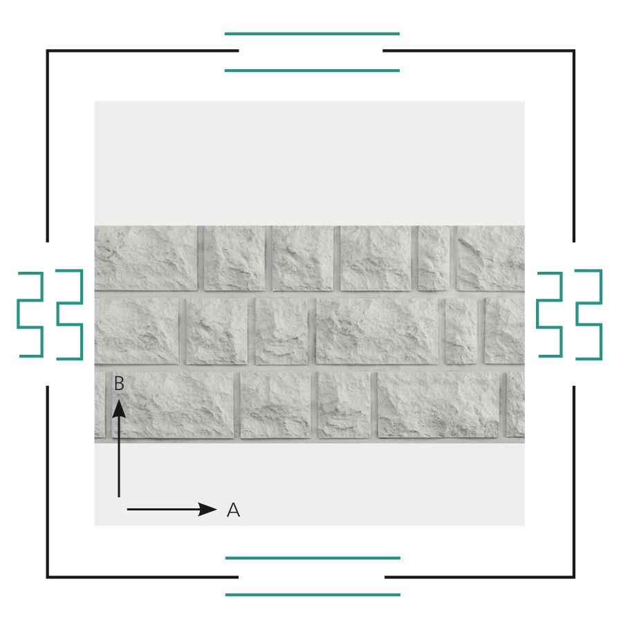 Wariant Metz z ciągłymi spoinami poziomymi (lagerfugi) i większą liczbą mniejszych kamieni. Matryca ma nieregularne zazębienie i może być dowolnie przedłużana w kierunku A lub B.