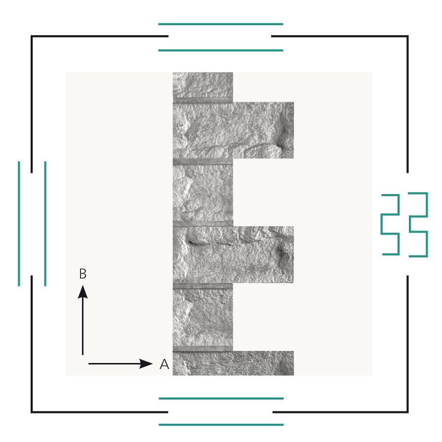 Narożnik lewy: element uzupełniający do matrycy "Lausitzer Granit", pozwalający przedłużać wzór z lewej strony lub formować naroża.