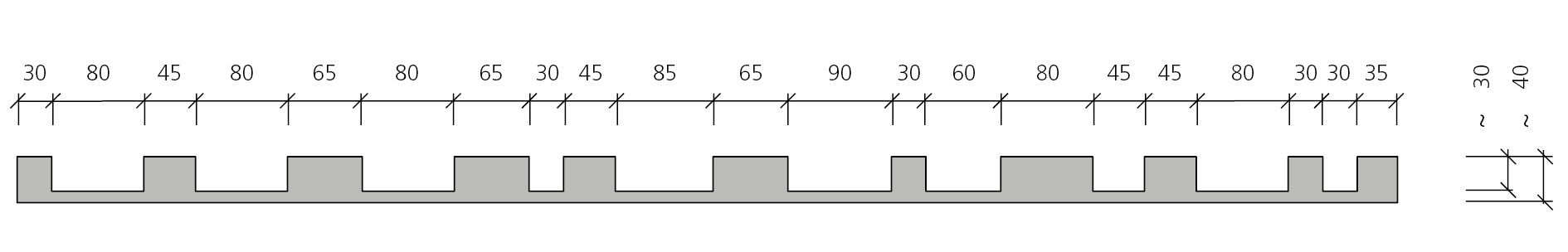 Struktura żebrowa o zróżnicowanej szerokości żeber.