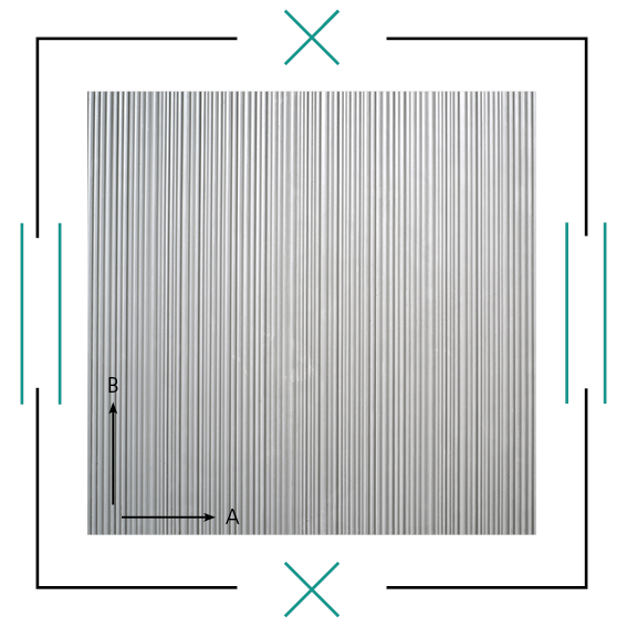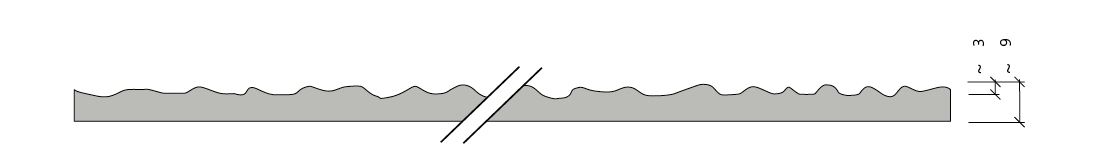Prosta, liniowa struktura falista z falami o różnej szerokości i głębokości. Gładka, drobnozłożona powierzchnia daje nowoczesną, "techniczną" teksturę.