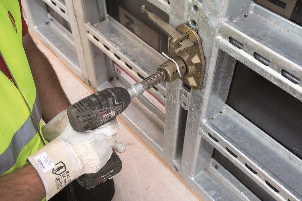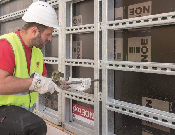 Istnieje duże zapotrzebowanie na ściągi do systemów deskowań, które mogą być instalowane po jednej ze stron szalunku. NOE-Schaltechnik zareagował na tę lukę w ofercie specjalnym rozwiązaniem: system tarcz NOEtop może być używany ze ściągami jednostronnymi NOEtop EinsA.