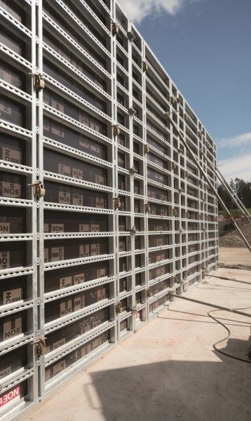 NOEtop EinsA wytrzyma parcie betonu do 60 kN/m2. Ten nowy produkt jest idealny dla wszystkich firm, które już posiadają panele NOEtop i które teraz chciałaby skorzystać z systemu ściągów jednostronnych. Nie muszą się one zaopatrywać w nowy system deskowań. Zamiast tego, mogą użyć systemu płyt, które już posiadają i które im tak dobrze służyły na wielu budowach. Najodpowiedniejszy system to płyty NOEtop o dużej powierzchni ze zintegrowanymi pasami usztywniającymi. Wystarczy tylko zamocować w profilu tylną nakrętkę uchylną, która utrzymuje koniec stożkowego ściągu lub przednią nakrętkę nastawczą. Mocowanie uzupełniające pozwala na zastosowanie standardowych tarcz. Istnieje możliwość wyprodukowania wszystkich dostępnych rozmiarów płyt jako standardowe do użycia wraz z NOEtop EinsA.