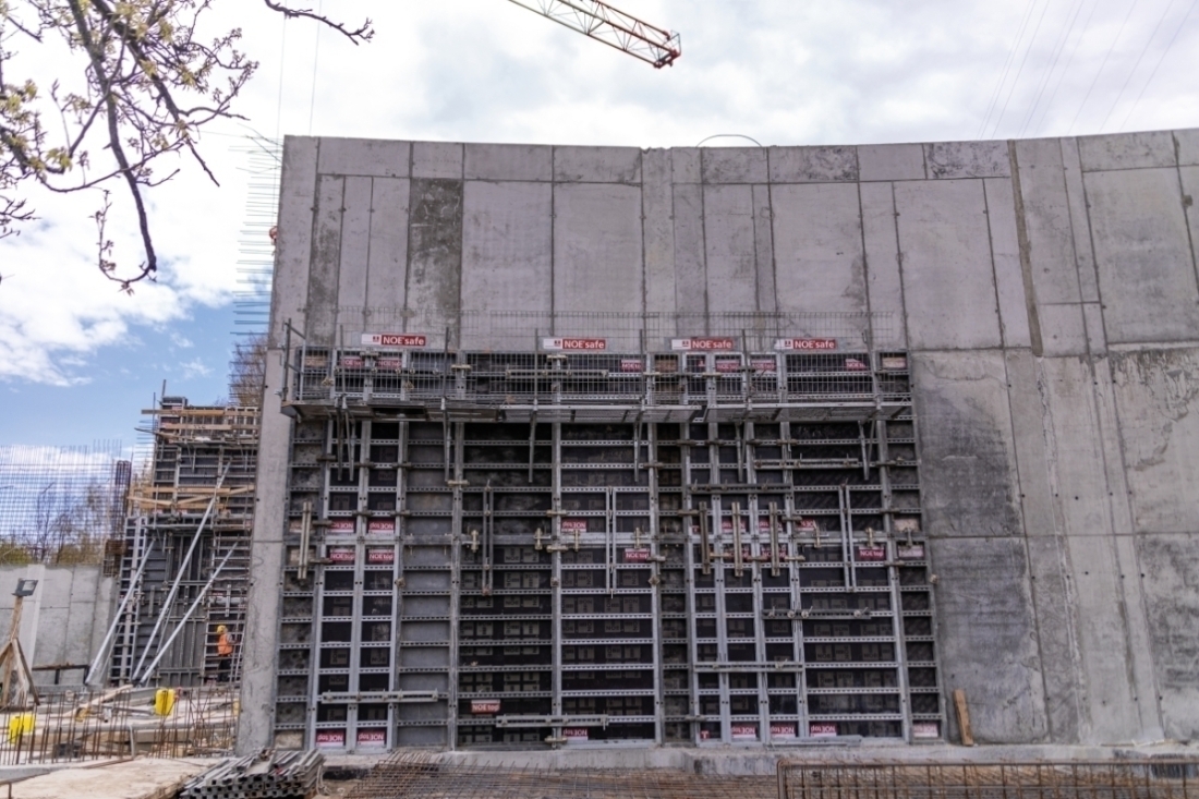 NOEtop na 7-metrowych ścianach łukowych na budowie Centrum Offshore w Porcie Gdańsk