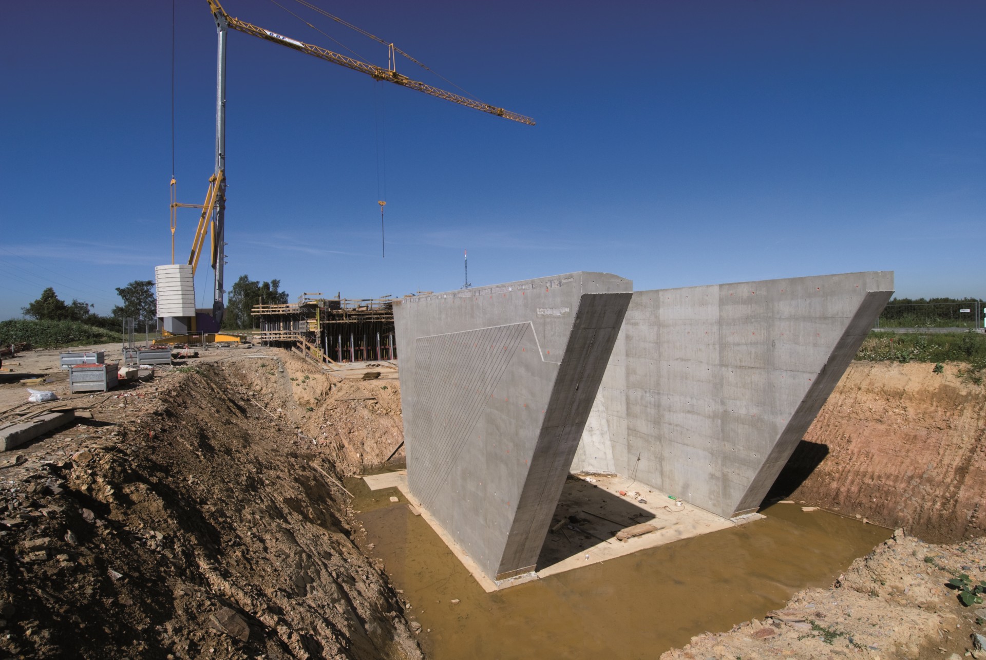 Szalunek NOEratio szczególnie nadaje się do stosowania w wymagających konstrukcjach inżynieryjnych i mostowych. Przy dostawie możliwe są standardowe wysokości 2,10 m, 3,40 m, 4,00 m, 5,00 m i 6,00 m. Dzięki elementom o szerokości od 100 do 300 cm ze stopniowaniem co 25 cm można zrealizować praktycznie wszystkie kształty geometryczne bez odwoływania się do czasochłonnych pól wyrównujących. W zależności od rozstawu ściągów spinających można wybierać naprężenia w betonie od 30 kN/m2 do 60 kN/m2. W sumie dla tej budowli zastosowano ponad 500 m2 NOEratio.