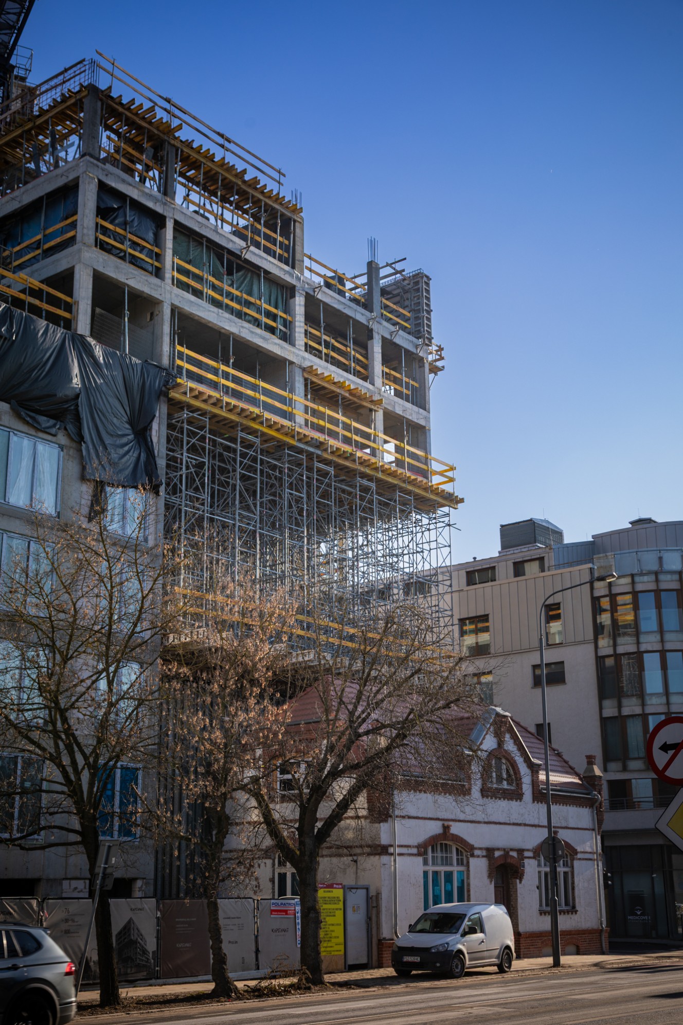 Głównym wyzwaniem konstrukcyjnym było zachowanie i pełna ochrona historycznego, ponad 120-letniego budynku Kapitanatu. Projektowana bryła została ukształtowana w sposób "obudowujący" zabytek, a trzy najwyższe kondygnacje zaprojektowano jako wyniesione ponad istniejącą strukturę. Oznaczało to konieczność przejęcia znacznych obciążeń i ich bezpiecznego przekazania z pominięciem chronionej substancji budowlanej.
