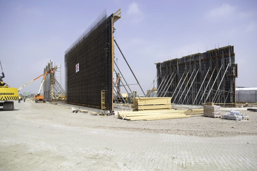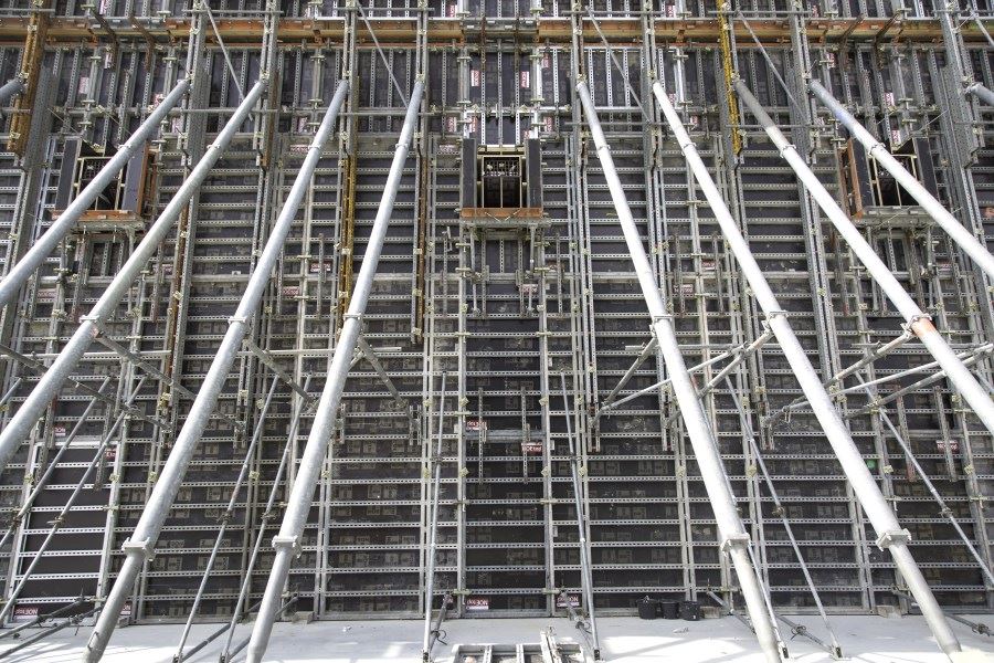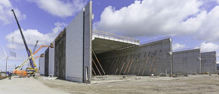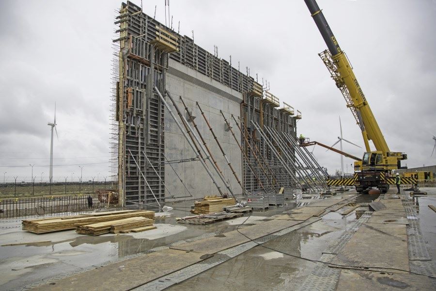 Wszystkie ściany wykonano z betonu in-situ, a do ich wylewania użyto ściennych szalunków NOEtop. System ten wyróżnia się łatwością w jego obsłudze, wieloma możliwościami zastosowania oraz wyjątkową trwałością dzięki na przykład temu, że rama oraz profile są cynkowane na gorąco z zewnątrz a także od wewnątrz. Ponadto wszystkie płyty szalunkowe mają odlewane naroża a profile mają jednolitą grubość. Poza standardowymi rozmiarami płyt firma zapewnia także płyty NOEtop XXL, które posiadają dodatkowo zintegrowane pasy usztywniające. Największe z tych płyt mają wymiary 5,30 x 2,65 m co pozwala użytkownikom pokryć powierzchnię ponad 14 m2 szybko i wydajnie bez połączeń. Płyty NOEtop o różnych rozmiarach mogą się łączyć ze sobą końcami lub bokami bez zakłócania ciągłości wzoru paneli. Zaletę tę wykorzystano na placu budowy w Borssele. Pozwoliło to na połączenie płyt NOEtop w taki sposób by wyjątkowy szczegół budynku gładko wkomponować w jego konstrukcję: wsporniki z betonu in-situ