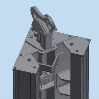 Zalety naroży NOEtop ujawniają się w sposób szczególny podczas montażu demontażu kompletnego deskowania wewnętrznego. Aby deskowanie zdemontować, należy przyłożyć siłę do drugiego końca dźwigni, poprzez przełożenie zawieszek żurawia przez zewnętrzne otwory głowicy, dzięki czemu czemu naroże zsuwa się do wewnątrz. W tej pozycji zapewnia luz wynoszący około 25 mm po każdej stronie, przez co wymiary deskowania wewnętrznego zmniejszają się łącznie o 50 mm na każdym boku. Przy tej czynności deskowanie odrywa się od betonu i odsuwa od niego na 50 mm, co pozwala je łatwo przenieść. Jeszcze prostsze jest przywrócenie stanu gotowości deskowania wewnętrznego do betonowania. Aby to osiągnąć, wystarczy przełożyć zawieszki linowe na głowicy dźwigni przez otwory znajdujące się od wewnętrznej strony głowicy naroży. Dzięki temu podczas podnoszenia szalunku przez żuraw deskowanie wewnętrzne rozsunie się do pierwotnej pozycji i będzie natychmiast gotowe do pracy.