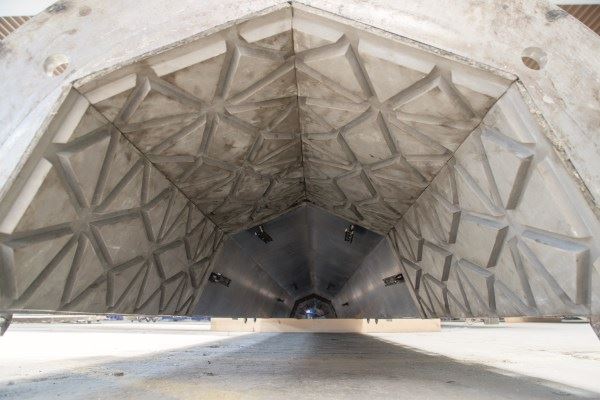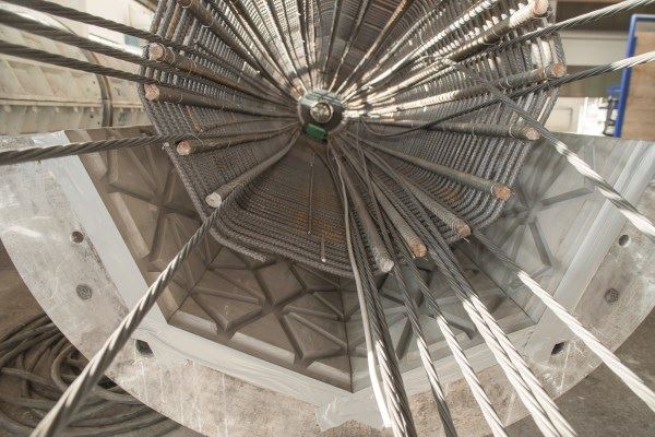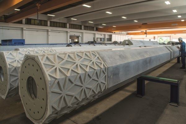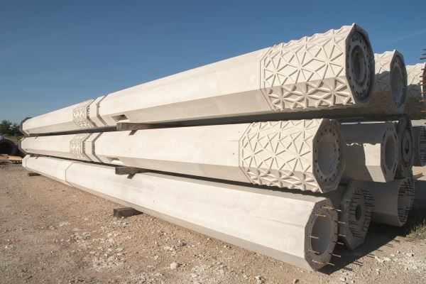 Ponieważ kolumny są różnych rozmiarów NOE-Schaltechnik dostosował gwiezdny wzór w szalunkach tak, by pasował do kolumn różnych wymiarów. W efekcie uzyskano reliefy wyglądające jak piękne, jednolite obwódki. Szablon motywu arabeskowego został stworzony przez ekipę projektową. NOE-Schaltechnik wyprodukował matryce pojedynczo, zgodnie z wymaganiami architektów. Ponad to, poza specjalnymi motywami, producent oferuje również szeroką gamę standardowo teksturowanych matryc. Obejmują one różne kamienne i murarskie struktury, motywy kwiatowe i wiele więcej. Matryce te zapewniają prosty sposób na nadanie wewnętrznym lub zewnętrznym powierzchniom betonowym zindywidualizowanego wyglądu. Robotnicy pracujący przy maszynach po wyjęciu kolumn z szalunków, przekazują je do dalszego procesu, podczas którego powierzchnia jest sprawdzana, jakiekolwiek nadlewki usuwane a kolumny zostają starannie zapakowane i przygotowane do transportu.