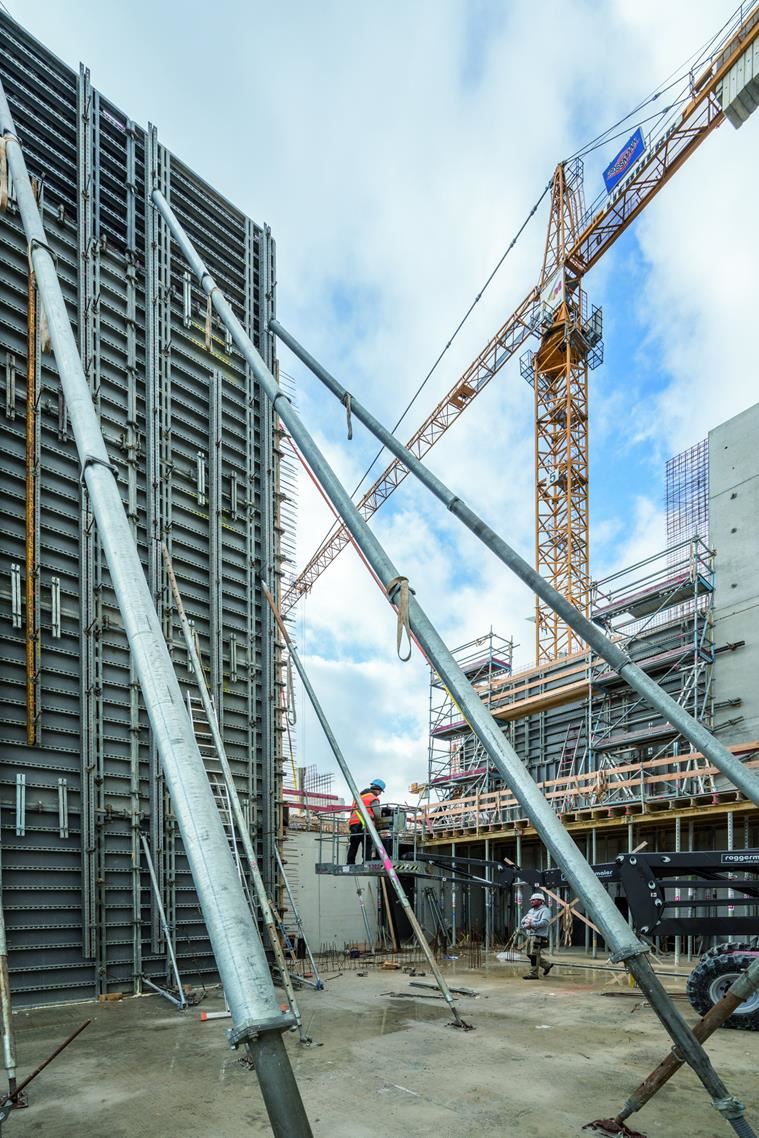 Ściany o wysokości 15,3 m wylane w jednym betonowaniu.
