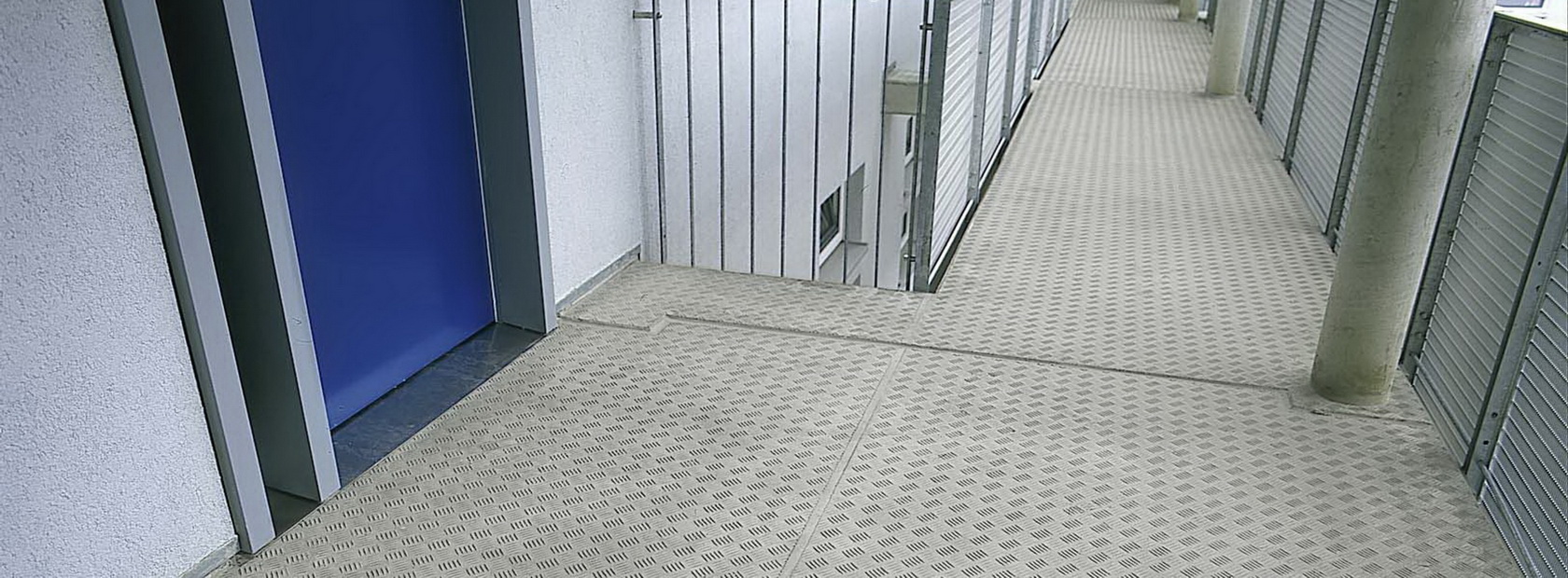 Sprawa w sam raz dla fakturowanych matryc NOEplast "Quintette". Struktura odlewu odpowiada wymaganiom DIN 51130 - R12, jest antypoślizgowa. Najważniejszym wymaganiem było tak precyzyjne docięcie matryc i wykonanie odlewów, by zmontowane płyty dokładnie do siebie przylegały. NOEplast spełnia te wymogi a uzyskana faktura "ryflowanej blachy" może być stosowana nie tylko do wykładzin podłogowych w budynkach komunalnych.