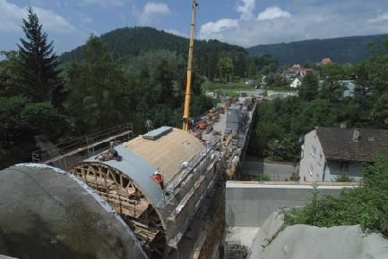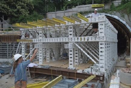 W celu wykonania ostatecznej skorupy tunelu wykonawcze przedsiębiorstwo budowlane - firma Baresel ze Stuttgartu -zaprojektowała, wspólnie z biurem technicznym NOE, pierwszy samojezdny szalunek NOEtec do budowy tunelu metodą górniczą. Jego budowa została wykonana z elementów systemu konstrukcji zespołowej systemu NOEtec. W stosunku do konwencjonalnego samojezdnego szalunku stalowego możliwa jest redukcja czasu budowy i montażu o ok. 50 %. Przynosi to dodatkowy zysk pod względem logistyki budowy i zmniejsza koszty o ok. 50 %. Konstrukcja zespołowa systemu NOEtec składa się jedynie z niewielu części systemowych - dźwigara, zastrzałów, zamków łączących i trzpieni - które można zamontować w okamgnieniu. Nadzwyczaj elastyczny system oferuje ekonomiczne rozwiązanie dla (prawie) wszystkich zadań związanych z szalowaniem w budowie inżynierskiej.