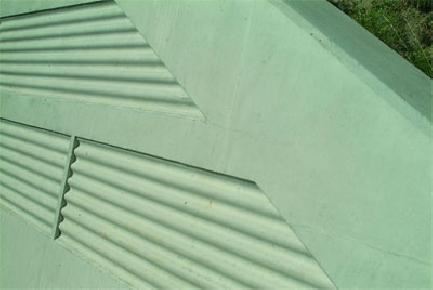 Falująca struktura matrycy "Sinus" z systemu NOEplast zdecydowała o wyglądzie przyczółków i wjazdów pod tunel.